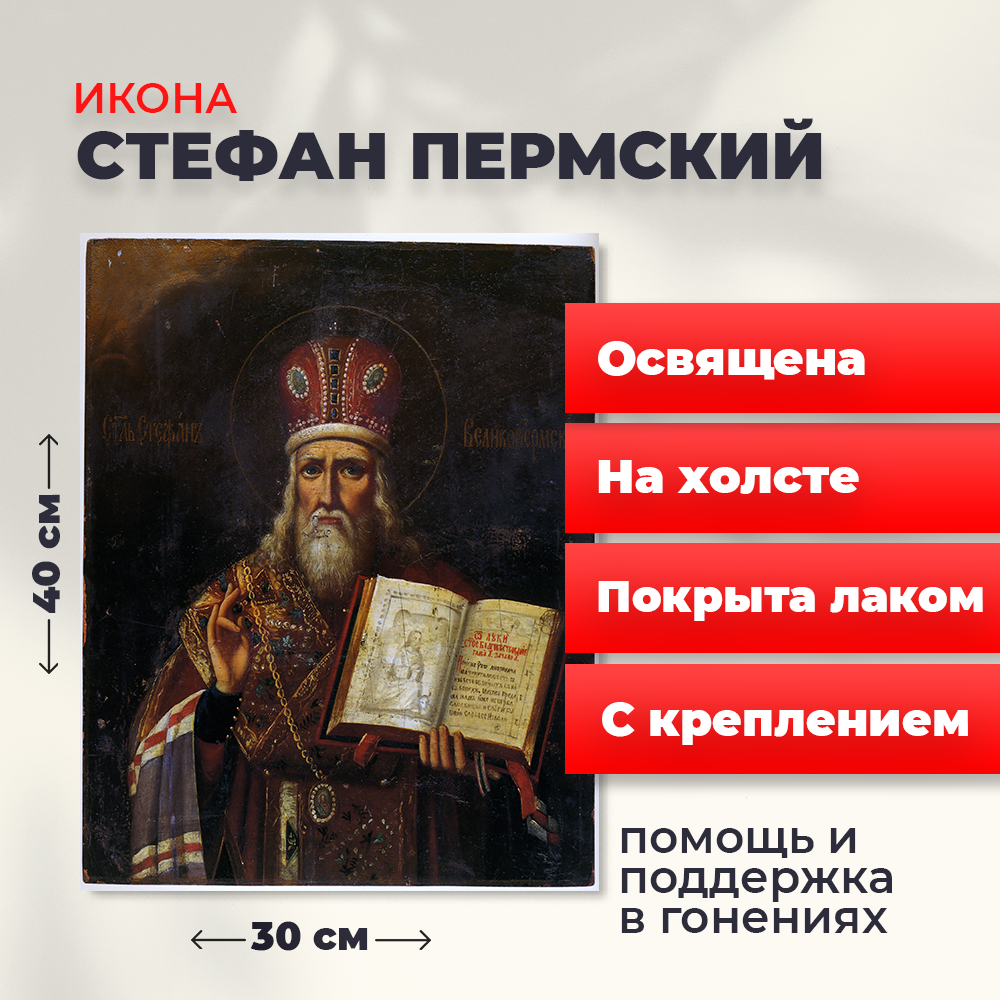 - Освященная икона на холсте "Стефан Великопермский"
